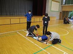 次は,実際に事故が起きたことをシミュレーションし,役割分担を意識した訓練をしました。
