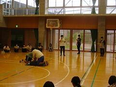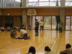 まずは「応急手当普及員」の先生が,デモンストレーションを行います。