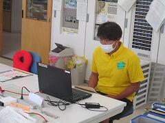 教育委員会からAEDのトレーニングキットを8体借り,全員がAEDの操作を研修します。
