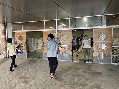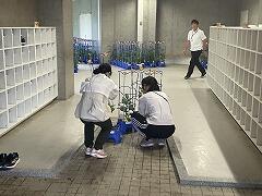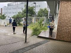 校内にある風に跳びそうな物を屋内に運びました。