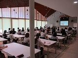給食室の調理の様子を動画で見ていただきましたが,ていねいに調理をしている様子にどよめきが起きました。