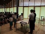 本日(7月19日)に,千葉県教育委員会と柏市教育委員会の方がお越しになり,運動部の子どもたちに認定証を渡しにきてくださいました。