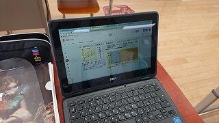 右下のPCから教室の黒板やスクリーンを映して、自宅でも学習できるようにしている場面です。