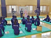 11月4日(水)、技術・家庭科の授業にて、講師にNPO和装教育国民推進会議の方々7名をお招きし、浴衣の着付け体験を行いました。