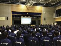小学校と異なる活動が多くあり、新入生は真剣に聞いていました。