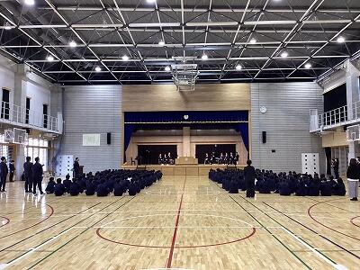 本日は、令和7年度の始業式・着任式を実施し、新たに本校に着任した教職員の紹介、校長先生からの話、生徒会長からのメッセージ、生徒指導主任の話が行われました。