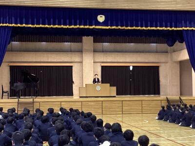 また、生徒指導主任からは、「新年度は変わるチャンスであり、新たなスタートを切るチャンスです」という言葉とともに、「いじめは絶対に許さない」という強い姿勢、そして「時を守り、場を清め、礼を正す」生活を全校で大切にしていこうと伝えられました。