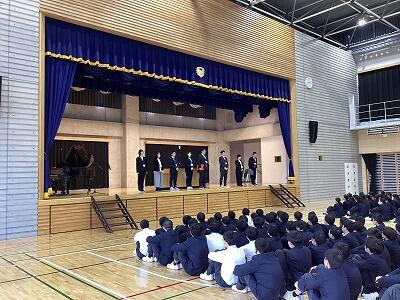 生徒会長からは、3年生は最上級生としての自覚をもち、2年生は後輩の手本となるように、そして一人ひとりが責任ある行動を心がけ、悔いのない1年にしていこう!という呼びかけがありました。