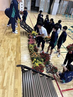 今日は2・3年生が、新入生のために入学式の会場準備を行いました。