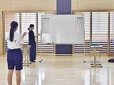 決議についても本校施設の特色を活かし、各教室からホワイトボードを使って、体育館へ報告しました。