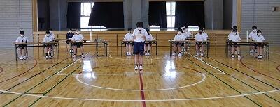 体育館では、生徒会・各委員長・部長代表が報告・質疑応答を行い、その姿を各教室で見て参加しました。