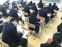 生徒たちは制服を着用してテストに臨み、教室には引き締まった空気が流れていました。