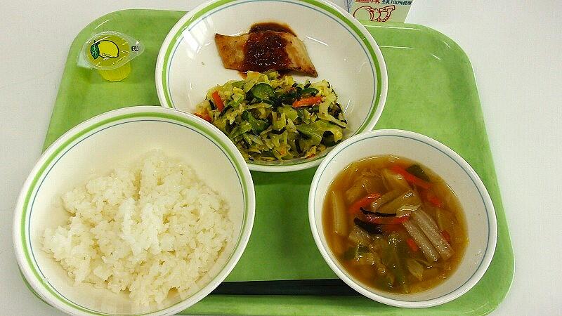 牛乳・ご飯・鰆のヤンニョム焼き・チョレギサラダ・タッケジャンスープ・ひとくちはちみつレモンゼリー