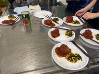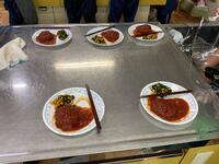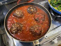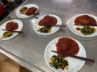 本日の献立は、「ほうれん草のソテー」と「トマト煮込みハンバーグ」です。
