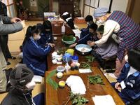 高郷方面では、椎茸栽培や里芋掘り、収穫した花豆の皮取り、ちまき作りなど貴重な体験をさせていただきました。