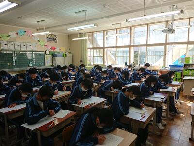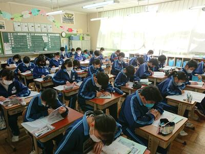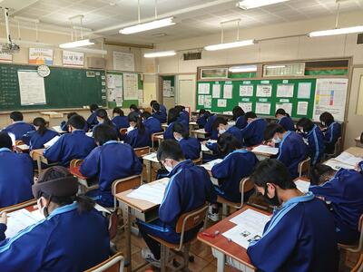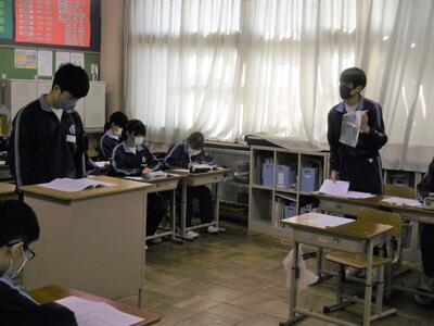 学級委員を中心に、スムーズな運営ができ、終了後もクラスで協力して課題の返却や、学活を行っています。