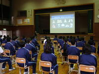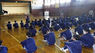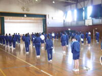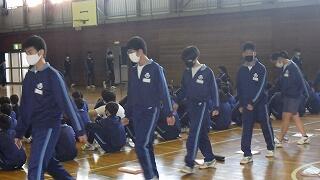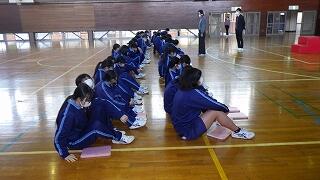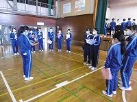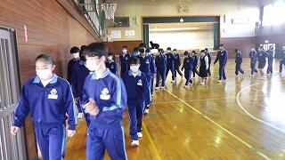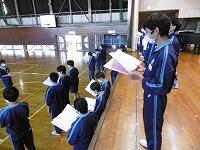 最後に川本校長先生から、学校アンケートをもとにした生徒の意識や学校の対応についての話がありました。概ね良い点が多いが、一層の努力を続けること、風早中学校の生徒としての心構えを持って、春休みを無事に過ごし、新年度の準備をしてほしいことなどが語られました。