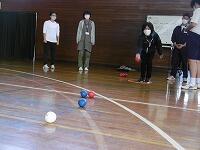 ゆりの木学級の体育の時間にパラスポーツで有名なボッチャを行いました。夏の東京パラリンピックの時期から担当の先生の手作りのボールを使い練習してきました。みんなが熱心に取り組んでいるので,今回本物のボッチャ用具を購入しました。本物のボールに触れて「結構重い!」という声がたくさん出ました。