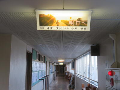前日までに飾り付けを済ませました。各クラスで趣向を凝らした発表が流され、3年生の教室の窓から