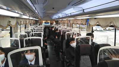 ・バス座席、写真隊形決め