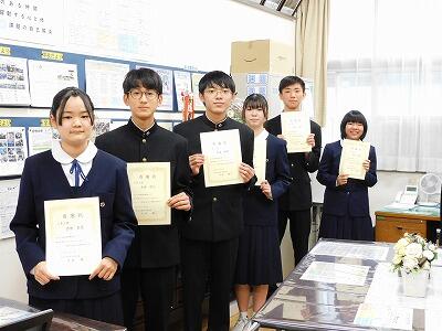 教育奨励賞は2組の渡部さん、吹奏楽部の皆さん(代表:1組横山さん)が表彰を受けました。