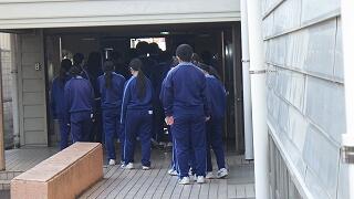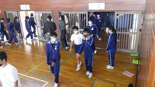 体育館で式を行い、生徒はリモート中継を通して教室で参加しました。