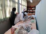 干し柿を作っている班もありました。自分達で皮をむいて、紐をくくりつけていきます。上手な手つきでできていますね。この調子で、頑張っていきましょう!