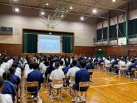 本日3年生が「楽学両道~思い出を未来に伝承しよう~」というスローガンのもと、修学旅行で学んだことを1・2年生に伝える学習発表会を行っていました。各班が実際にいった万博のパビリオンをスライドにまとめ、発表していました。1・2年生も真剣に聞いてくれて、とてもよい時間となりました。一人でも万博に興味をもってくれたらうれしいですね。
