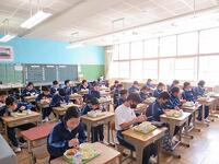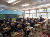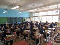 普段の給食と同じく、席を前に向けての黙食でしたが、どこか楽しそうな様子が見られます。