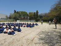 本日,12日(火)避難訓練を行いました。年度始めということで,各学年の教室から校庭の避難場所への移動方法を確認するためのものです。地震発生を想定し,教室での一次避難から校庭への二次避難までを,避難場所での密を回避するために各学年ごとに三回に分けて実施しました。