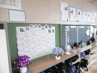 4月12日,学級目標を決めたり,学級掲示物を作成したりました。学級目標決めでは,それぞれのクラスへの思いを共有し,より良い学級目標づくりを行いました。