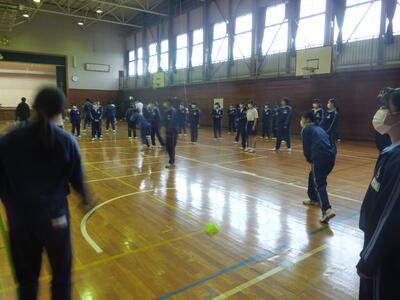 学年レクでは男女別でのドッジボールと伝言ジェスチャーゲームを行いました。