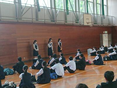 リモートでの配信ということで、3年生の先輩たちもかなり緊張した様子でしたが、しっかりと委員会や部活動についての話をしてくれました。