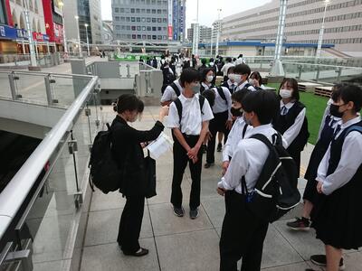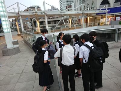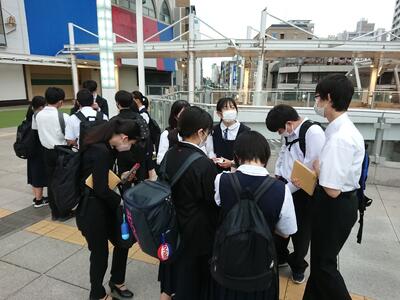 各班が順調に出発し、最初の見学地を目指して、バス停へ、駅へ、あるいは徒歩で向かいます。慣れない場所でトラブルもあるでしょうが、班で力を合わせて楽しく仲良くいい1日にしましょう。