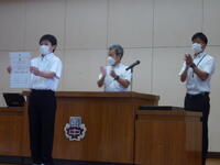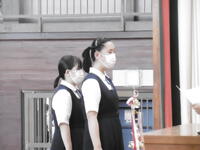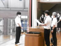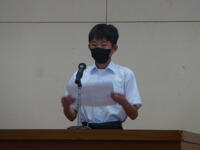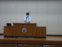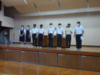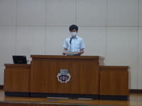 式では各学年と生徒会から2学期の抱負について話があり、その後、校長先生から行事等に向けてのお話がありました。