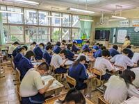 夏休みには、担任と三者面談を行い、具体的な目標を話し合ってきました。進路実現の参考になるテストでもあるため、真剣な眼差しで受験しています。