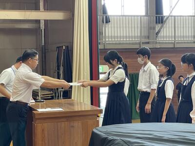 今生徒会もしくは委員長として先陣を切って活躍をしてきた3年生・2年生には、今までの働きに感謝の意を込めて、感謝状が贈られました。