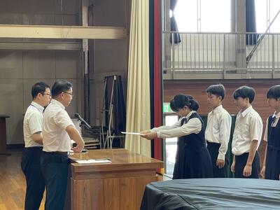 また、新生徒会・委員長には、任命書と期待の拍手が送られました。風早中学校の新しいリーダーとしてこれから輝いてくれることでしょう。