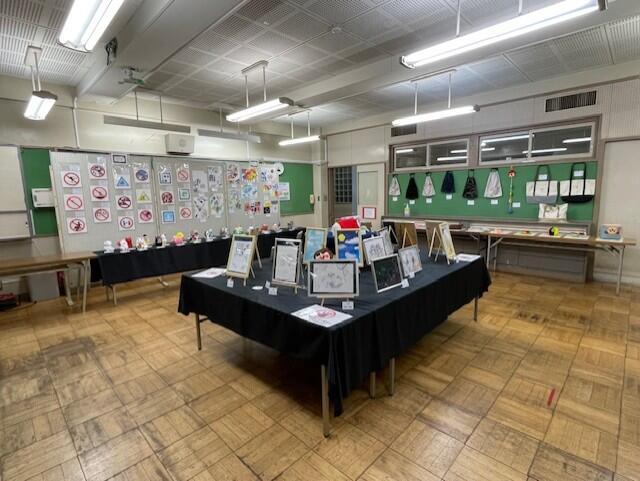 風文紀祭に向け、生徒の皆さんが作った作品がA棟1階のミーティングルームに搬入されました。