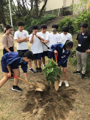 本校でも生徒会役員生徒が中心となって校庭に植樹が行われました。