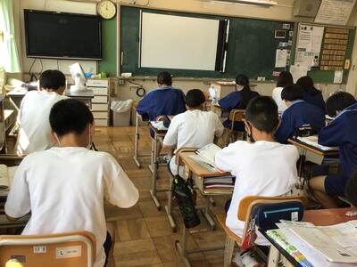 定期テスト1日目。理科、英語、国語。皆、真剣に取り組んでいました。