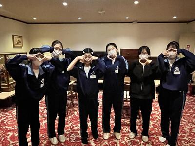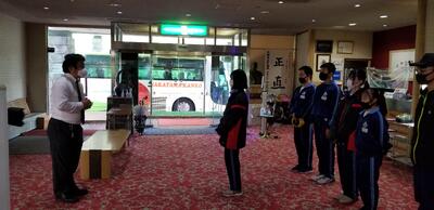 予定していたホテル前での退館式が行えなかったため、朝食会場でホテルの方に挨拶をしました。