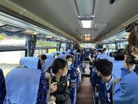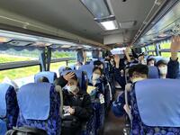 マウント磐梯の方々に見送っていただき、バスの中では、レクを行いました。