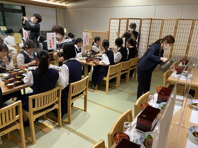 品数も多く、豪華な和食の朝食は中々食べられないので貴重な機会です。たくさん食べて、今日の班別行動のエネルギーにしましょう。