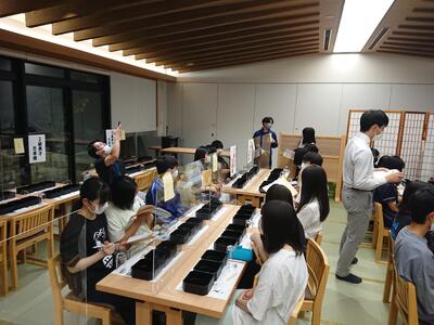 とても豪華で蓋を開けた途端生徒たちはすぐに食べ始め、あっという間に完食しました!楽しそうに食べている姿を見てこちらも幸せな気持ちになりました。美味しく楽しい夕食になり、初日から良い思い出づくりとなりました。