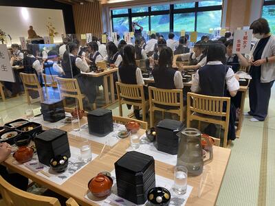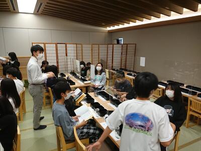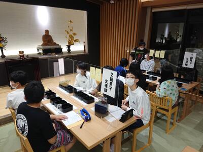 智積院での初めての夕食です。色々なところを見学してお腹も減っている生徒たちは、蓋を開けるのを楽しみにしていました。