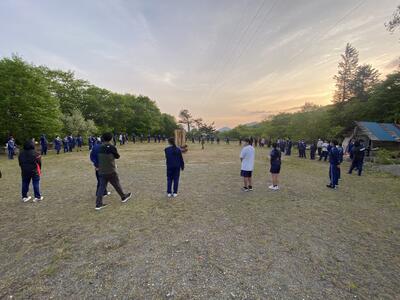 6時20分に起床し、寝具の片付けを行いました。昨日の夜はハイキングの疲れもあるのか、みんなよく寝ていました。