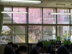 今、中央の庭にある紅梅の花がきれいに咲いています。風が吹くと花びらがきれいに舞って、最近、教室の窓から見える景色に春を感じるようになりました。