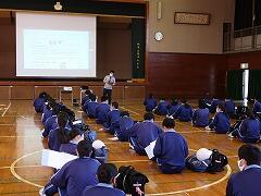 注意事項や当日のおおまかな流れについて先生からの話があり、真剣な様子で聞いていました。