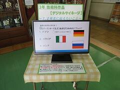 さて、そんな3年生は技術科の授業で「1、2年生へ向けて伝えたいこと」をテーマにデジタルサイネージを作成しました。デジタルサイネージとは、いわゆる「電子看板」や「電子広告」のことで、最近、駅や公共施設、病院、店舗など様々な場所で見ることができます。今日、明日と各学年のフロアに展示しています。